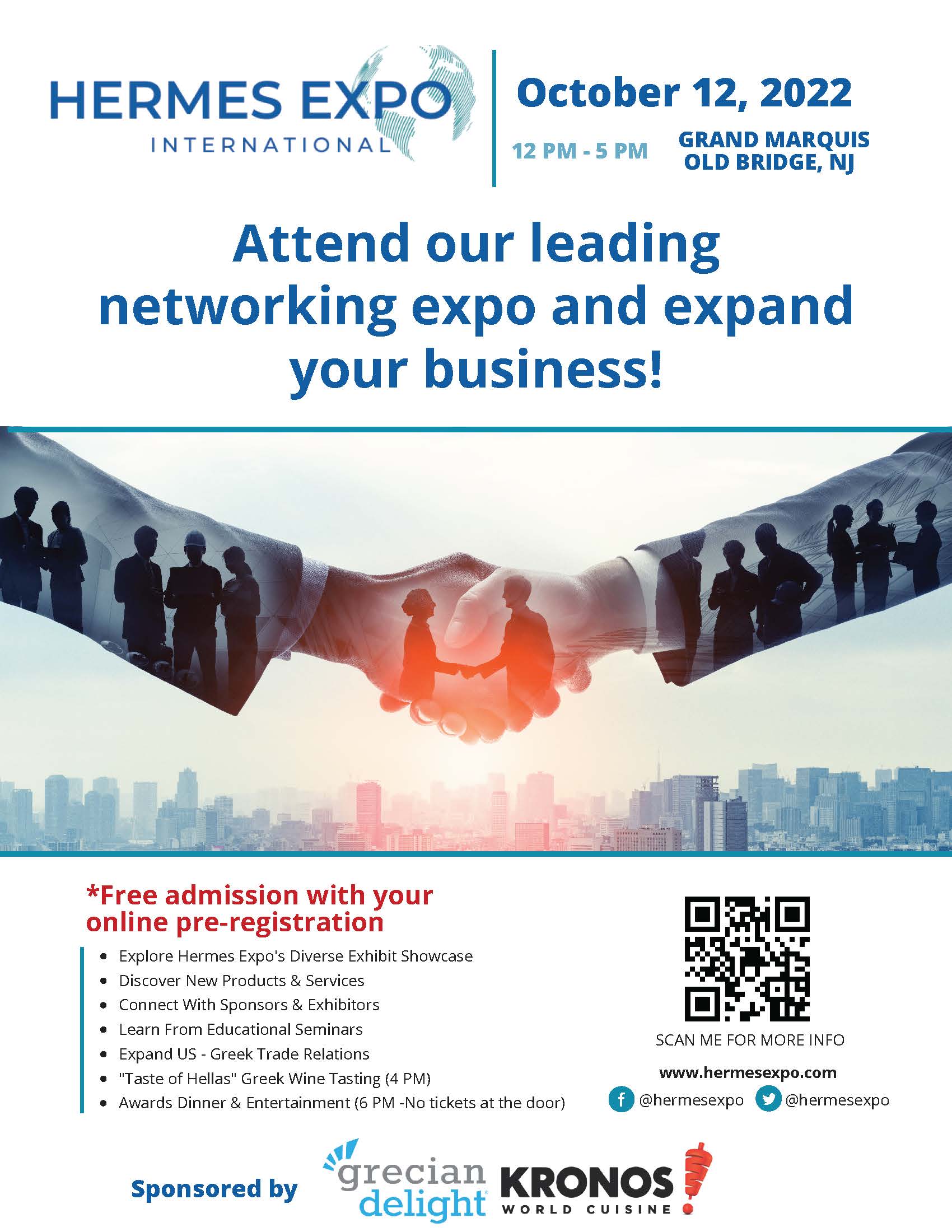 Hermes Expo International (Hermes Expo) is a leading business expo and networking company in America, which has been promoting commerce, communications, and culture between America and Greece since 1992.